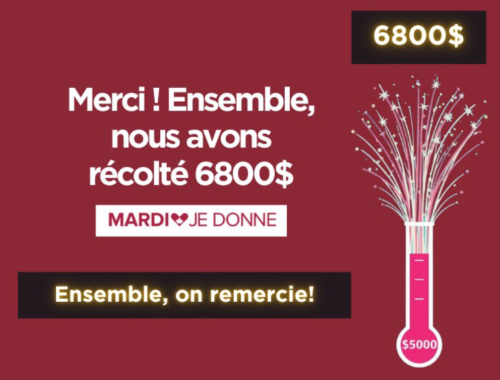 Grâce à la générosité de nos donateurs, à l’engagement de nos bénévoles et à la confiance de nos usagers, nous avons récolté 6800$.